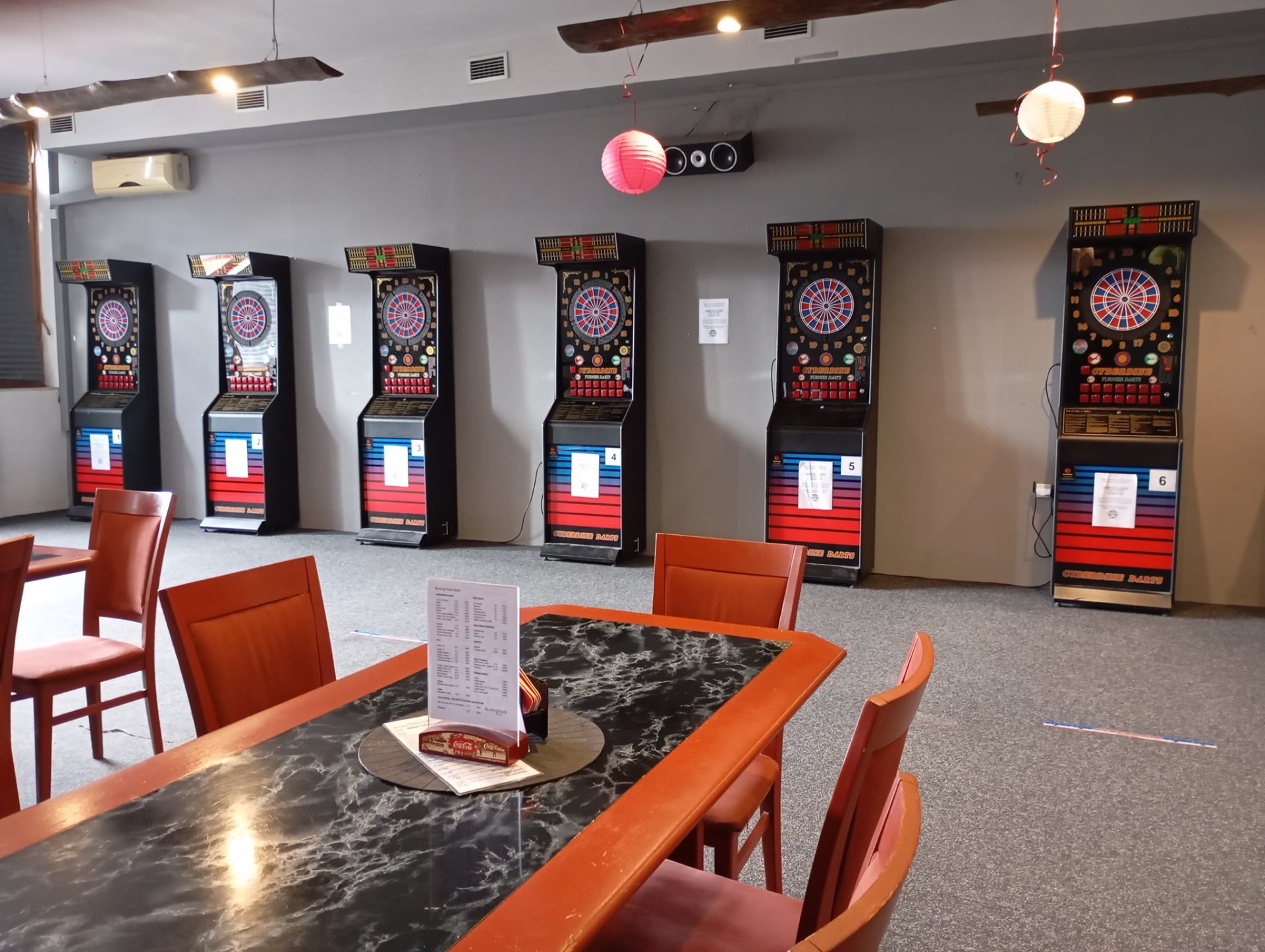 Šipky na 6ti automatech značky Cyberdine Turnier Darts jsou úžasnou kolektivní hrou, kdy se můžete skvěle bavit a soutěžit třeba ve hře 501 s přáteli nebo rodinou. 1 hra/1hráč = 10Kč. Hrát může až 8 hráčů na 1 automatu.